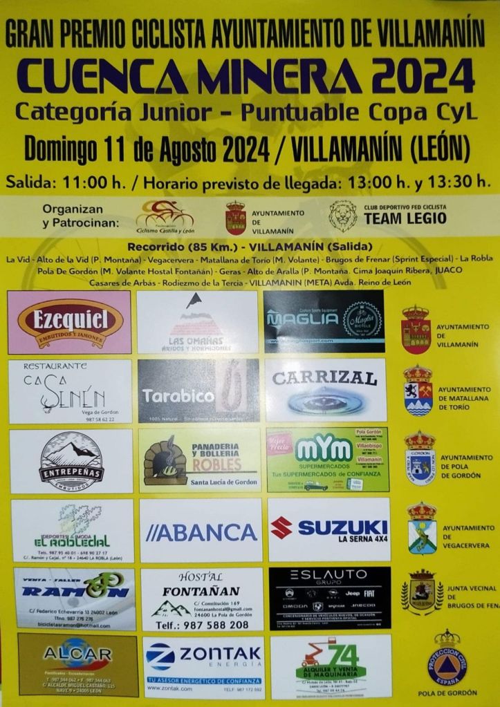 Este domingo, 11 de agosto, se disputará con salida y meta en Villamanín, el Gran Premio Ciclista Cuenca Minera 2024, una prueba de categoría Júnior que recorrerá 85 kilómetros por los mejores puertos de la Montaña Central Leonesa, y que contará con un Sprint especial en Brugos de Fenar. En la salida estará Héctor Álvarez (Lucta Granja Rinya).