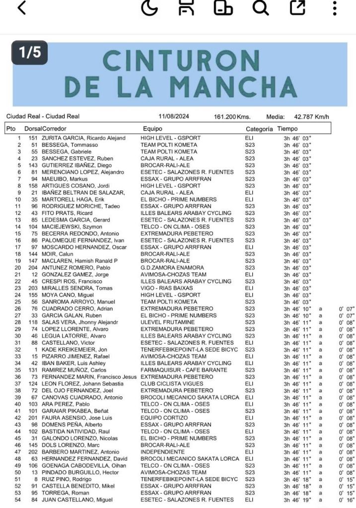 Ricardo Zurita (High Level Gsport) ha estrenado el palmarés del recién creado Circuito de La Mancha tras ser el más rápido en el esprint masivo disputado en las calles de Ciudad Real. Tommasso Bessega y Gabriele Bessega, del Polti, han completado el podio. Diego Gutiérrez (Brocar Rali Alé) se ha llevado el premio de la montaña y Nicolás Borrás (Illes Balears), las MV.