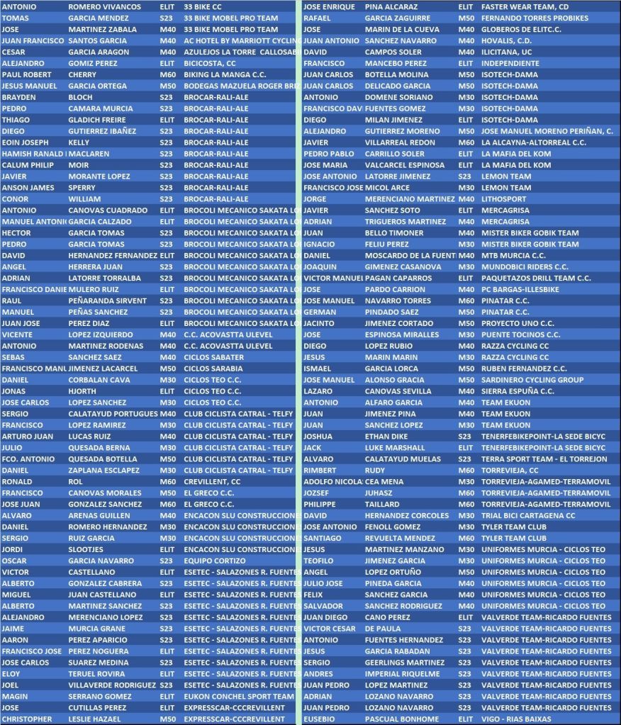 El amplio pelotón existente buscará el sustituto de Manuel Maestra, del Brocoli Mecánico, ganador de la edición de 2023.