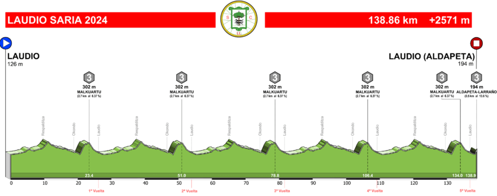 XXXIV Laudio Saria: Laudio – Muro de Larraño (Laudio); 138,8 kilómetros (sábado, 17 de agosto)