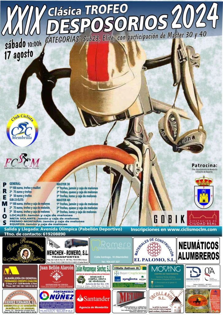 El sábado, 17 de agosto, se disputa en Membrilla la XXIX Clásica Trofeo Desposorios con salida a las 10 horas. Serán 126 kilómetros de recorrido. El pelotón estará formado por corredores Élite, Sub 23, Máster 30 y 40.