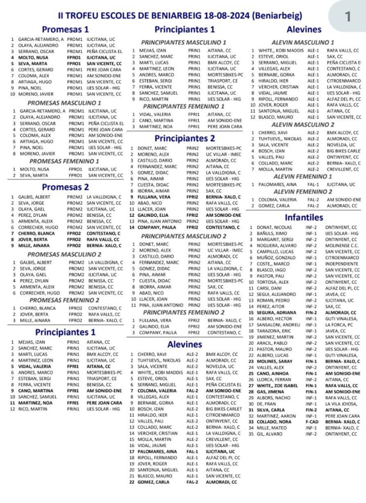 08/06 Cocentaina. IV Trofeu Rafa Valls. Clasificaciones