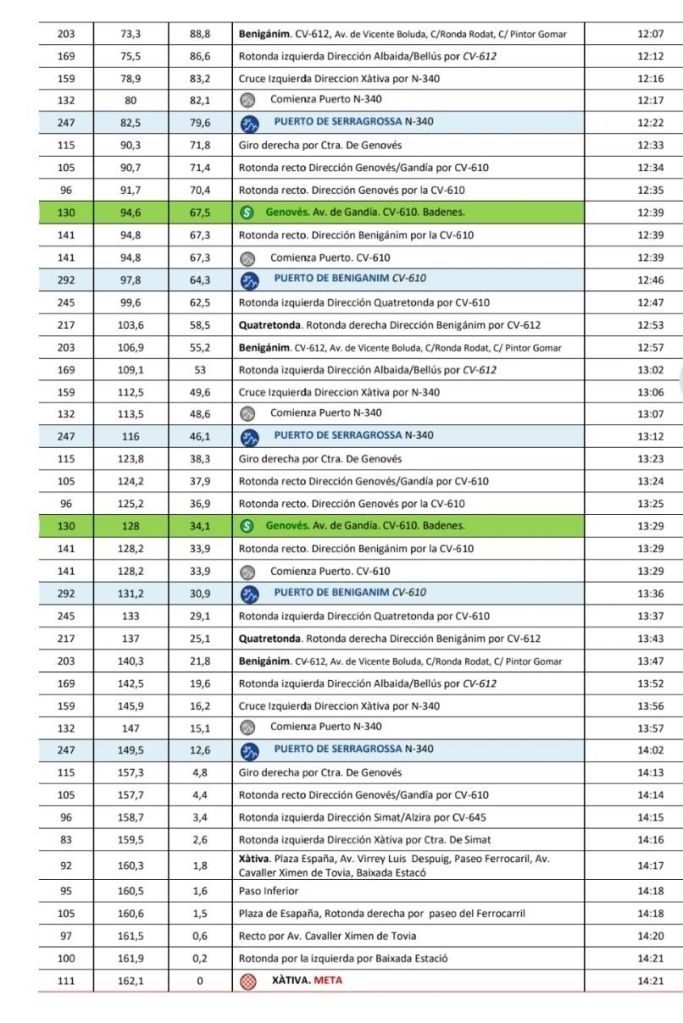 Está prueba se iniciará en la calle de la Bajada de la estación de Xàtiva para dirigirse hacia El Genovés donde los corredores darán un par de vueltas antes que coger el circuito grande donde los participantes deberán realizar cuatro vueltas para finalizar en el mismo lugar de la salida hacia las 14’20 horas.