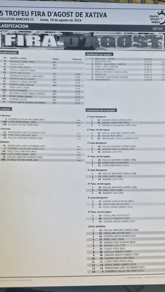 – 19 agosto – 35º Trofeu Fira d’Agost de Xátiva – Xátiva (Valencia). Clasificaciones