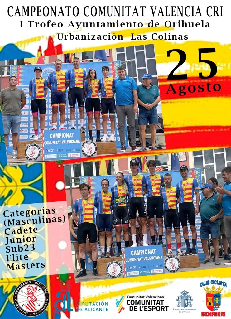 El Campeonato Autonómico de contrarreloj individual de las categorías masculinas: cadete, junior, sub23, élite y másters tendrá lugar el domingo 25 de agosto en la urbanización Las Colinas de Orihuela bajo la denominación de I Trofeo Ayuntamiento de Orihuela. La organización corre a cargo del Club Ciclista Benferri. El circuito es un auténtico diente de sierra, muy exigente.
