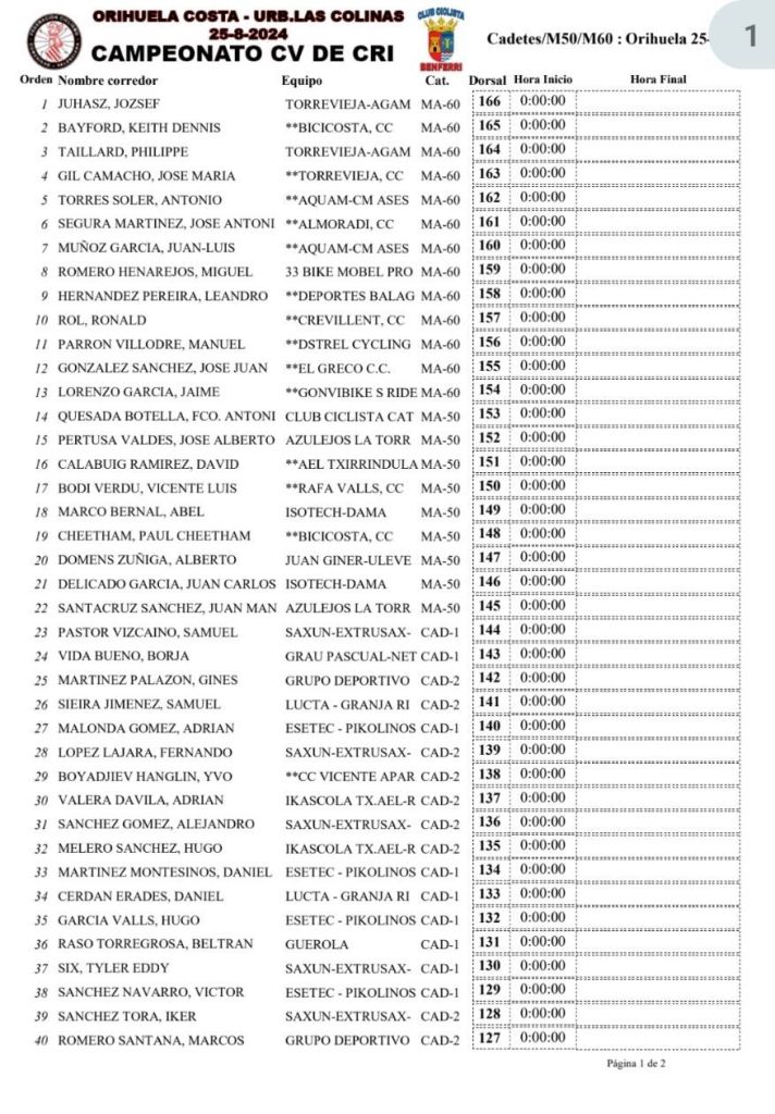 * Entre las tandas de las categorías M40-M30-junior-Élite-Sub23 y M60-M50-cadetes, se guardará un descanso de unos 30 minutos aproximadamente.