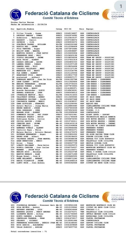 El Ulevel-Frutamine estará presente el domingo, 25 de agosto, en Reus en el Trofeu Carlos Ferrán. La salida está prevista para las 11 horas. La escuadra valenciana estará formada por Fran Centelles, Jorge Negre, Alejandro Ruiz, Adrián Valle y Johnny Salas.