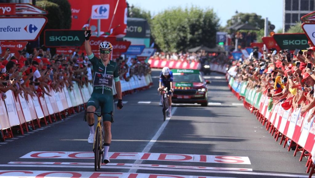 Wout van Aert (Visma-Lease a Bike) sigue intratable en La Vuelta 24 y ha sumado este martes su tercer triunfo en la 10ª etapa. Después de una primera semana en los que había sumado dos triunfos al sprint en Castelo Branco y Córdoba, el belga ha apostado por la fuga en una exigente etapa de media montaña entre Ponteareas y Baiona y ha logrado gestionar con solvencia la carrera para batir en la meta al francés Quentin Pacher (Groupama-FDJ), que le ha acompañado en su ataque decisivo a 31 kilómetros de meta para anticiparse a sus potentes rivales. A 5’31” entraba el grupo de favoritos, donde no ha habido movimientos destacables que inquietaran el liderato de Ben O’Connor (Decathlon-Ag2r La Mondiale), que vestirá un día más con La Roja en Galicia.