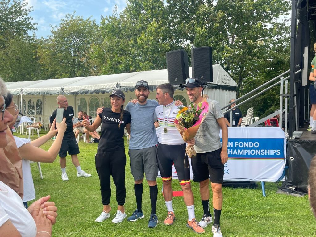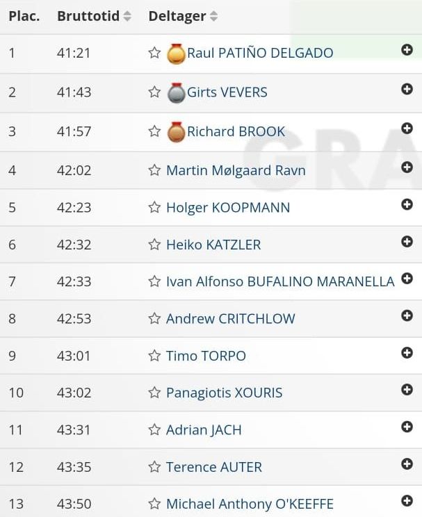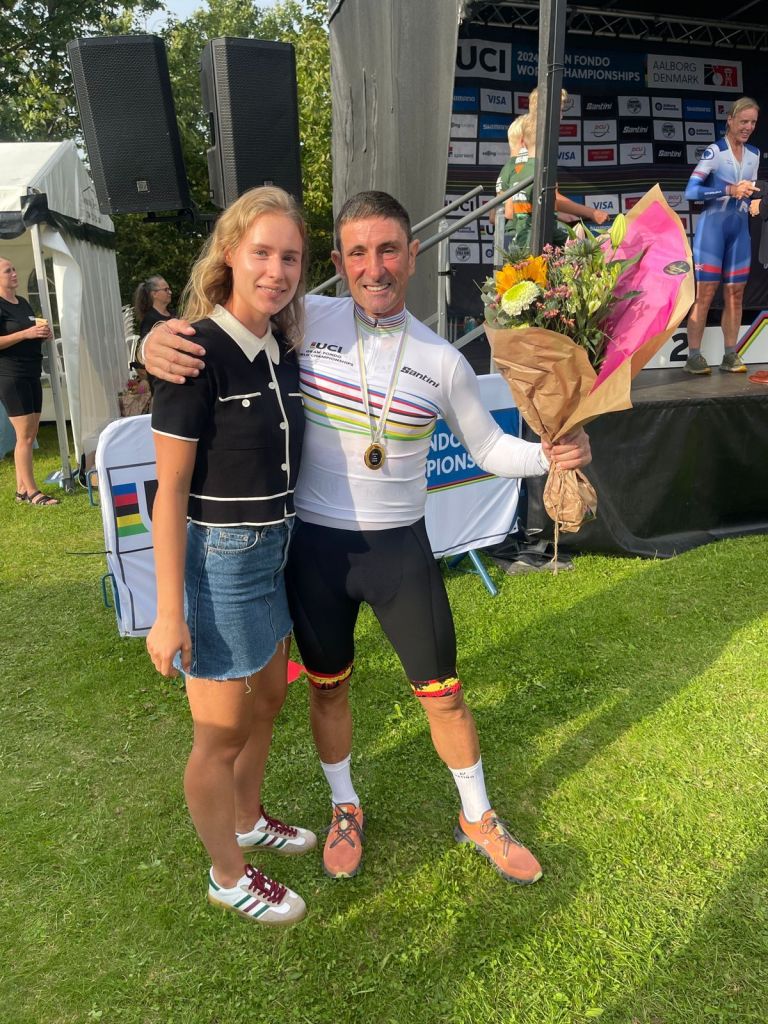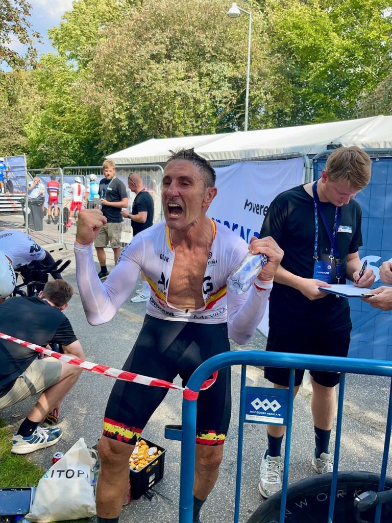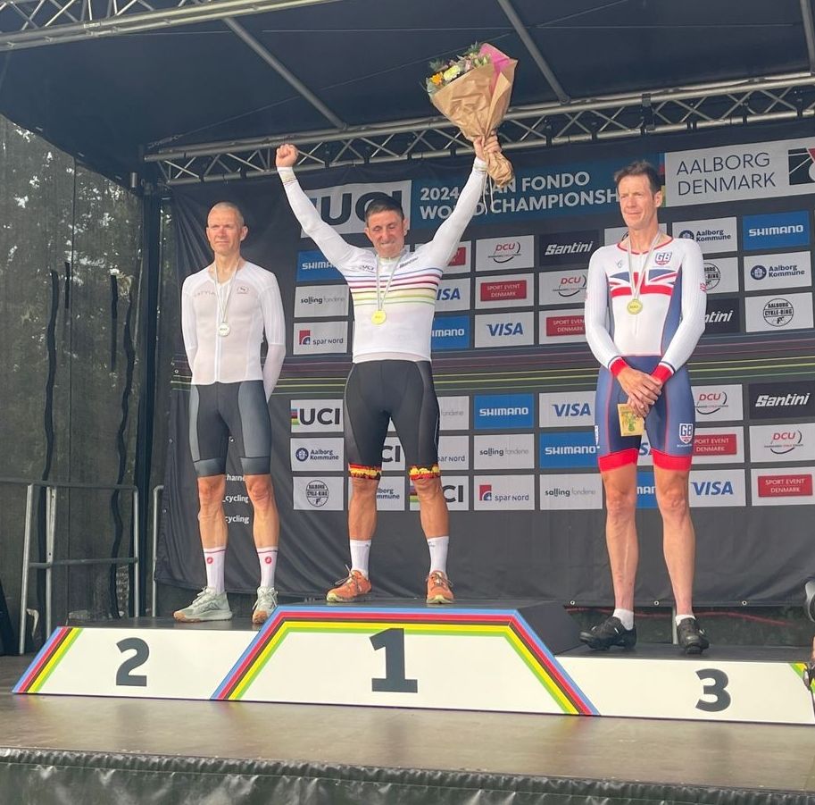 Raúl Patiño se ha proclamado esta mañana en Aalborg (Dinamarca) campeón del Mundo M 50 en la modalidad de contrarreloj individual. Girts Vevers y Richard Brook han conquistado las medallas de plata y bronce, respectivamente. «Ha sido increíble. En mi fuero interno me conformaba con un Top 5, ya que el nivel era muy alto. Pero mis sensaciones eran desde el principio muy buenas y me ha salido todo perfecto. Además, me ha salido bien arriesgar con las ruedas», señala el alicantino.