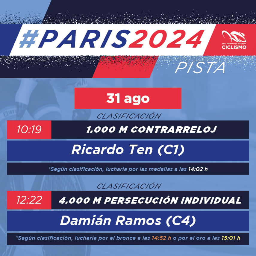 La jornada de mañana contará con presencia de la Selección Española por parte de Ricardo Ten en el kilómetro contrarreloj y con Damián Ramos en los 4.000 m persecución individual.