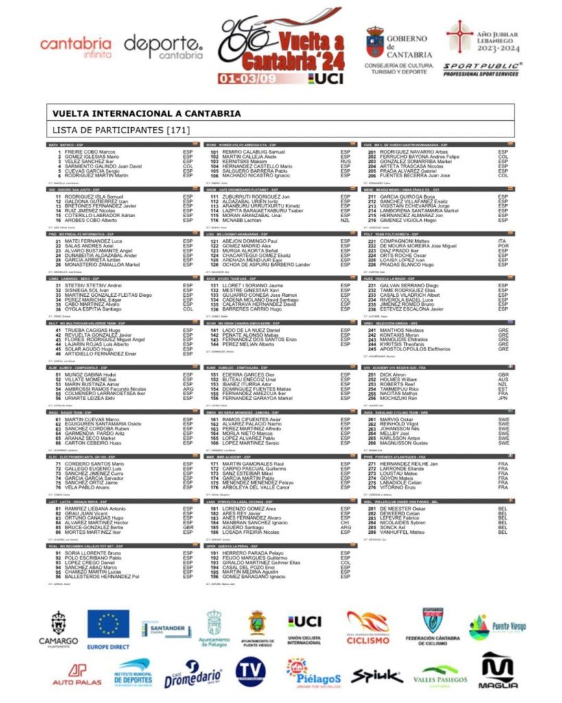 La Vuelta a Cantabria júnior internacional, que se disputa del 1 al 3 de septiembre, contará con 29 equipos, 24 nacionales y 6 internacionales que buscarán la victoria final y entre las que se encuentran el Lucta-Granja Rinya (Antonio Ramírez, Vicent Grau, Hugo Ortuño, Iker Mortes, Bertie Bruce y Héctor Álvarez) y UAE Ayuso Team (Jaume Lloret, Xavi Mestre, José Ramón Guijarro, Hugo Barreres, David Santiago Cadena y David Calatrava). Óscar Orts competirá con el Polti-Kometa Team.