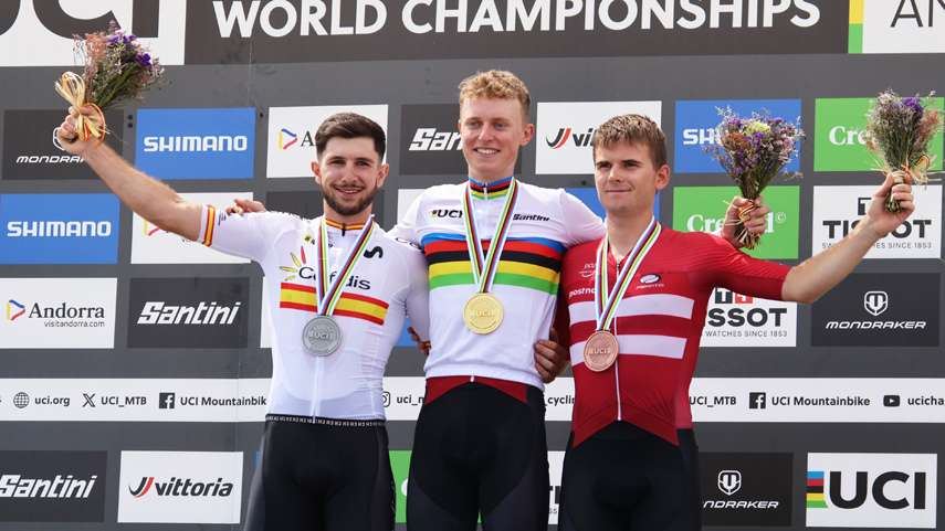 Los júnior de la Selección Española Hugo Franco y Alex García han ofrecido esta mañana un sensacional espectáculo en la carrera de XCO del Mundial de Pal Arinsal (Andorra), siendo segundo y sexto respectivamente tras estar durante toda la carrera en el grupo que ha peleado por las medallas.