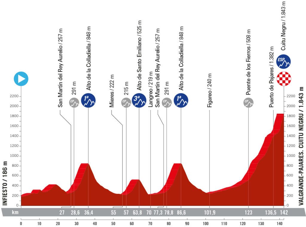 15ª: Domingo 1 septiembre. Infiesto (Asturias) (13:51)-Valgrande-Pajares. Cuitu Negru (Asturias) (17:20), 142 kms