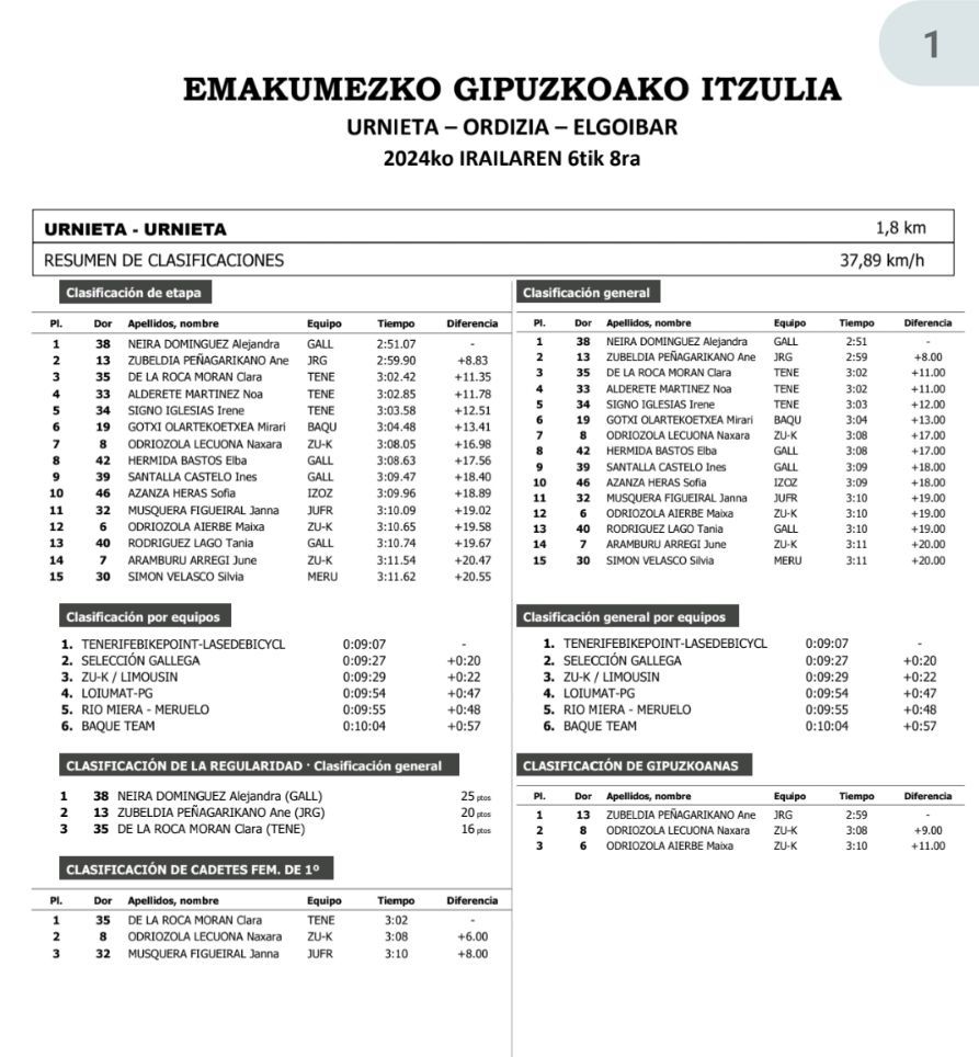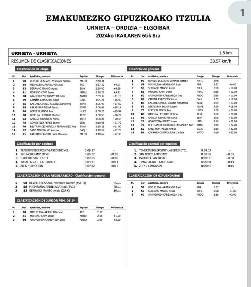 En la categoría júnior, victoria de Verónica Natalie Revelo (Matos). Claudia Xiangfeng Galiano ha terminado séptima y su equipo, el Tenerife Bike Point-La Sede, primero.