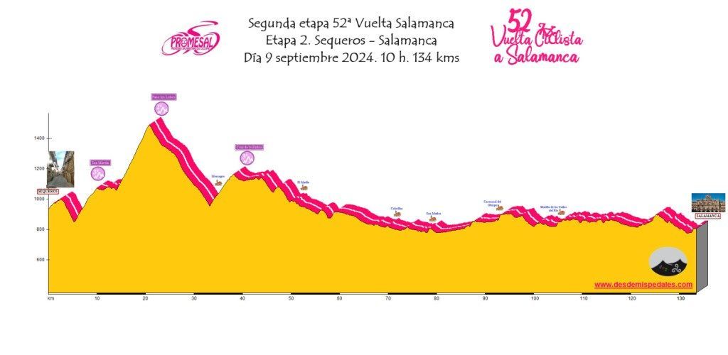 Etapa 2: Sequeros – Salamanca; 134 km (lunes, 9 de septiembre). 10h.