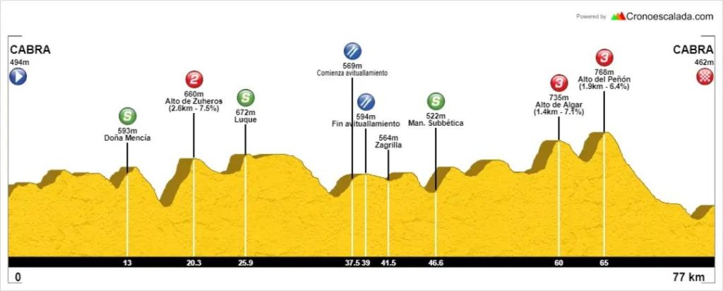 1ª etapa: Viernes 13 de septiembre de 2024 – Cabra-Cabra. 77km. 16:30 horas.