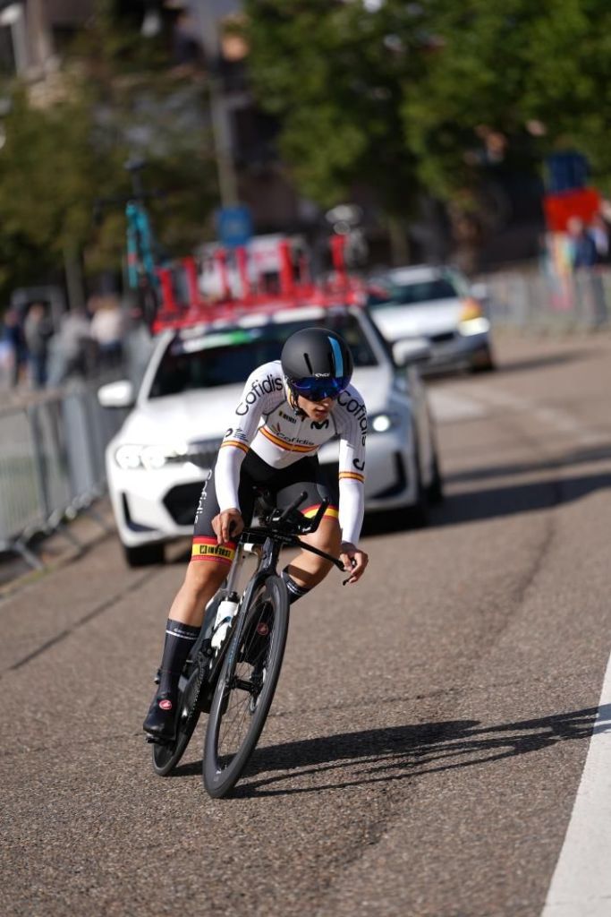 El rendimiento de los juniors de la Selección Española ha sido altísimo durante esta primera jornada de competición en el Campeonato de Europa como demuestra el hecho de que Héctor Álvarez haya finalizado dentro del top 8 de su categoría. El ciclista valenciano, que está siendo uno de los juniors más destacados del año a nivel internacional, ha vuelto a poner de manifiesto su potencial y capacidad rodadora con un octavo puesto de gran valor, sobre todo si tenemos en cuenta que la contrarreloj ha contado con el mismo recorrido que la de la categoría élite, 31’1 km, una distancia mucho más larga de lo que habitúan a realizar los juveniles.