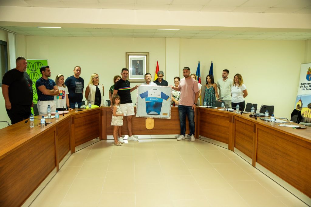 Se le entregó un maillot con los colores de su pueblo y los escudos de Ayuntamiento salinero y de la Concejalía de Deportes; se reflejó en el acta del citado pleno el reconocimiento a sus logros del Ayuntamiento y de todos los partidos políticos de la localidad; y se dejó entrever que podría darse su nombre a alguna zona del pueblo.