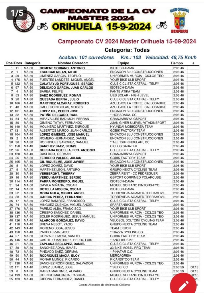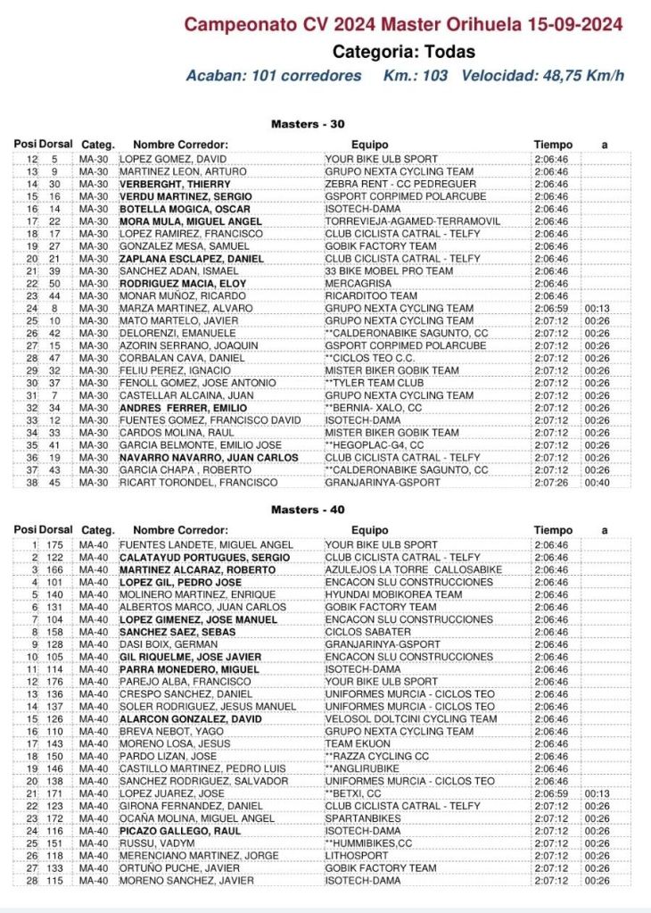 Antonio Domene (Isotech-Dama), en M30; Miguel Ángel Fuentes (Yourbike), en M40; Juan Carlos Delicado (Isotech-Dama), en M50; y Pascual Orengo Malonda (Miguel Soriano), en M60, se han proclamado esta mañana en Orihuela campeones autonómicos Máster.