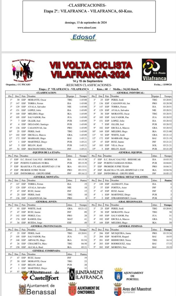 Ferrán Torra se ha llevado la montaña; Jordi White, el maillot de mejor joven; Fran Alemany, las metas volantes; Jaume Ruiz, la combinada; y Isaac Gálvez ha sido la mejor escuadra. Janna Musquera se ha impuesto entre las féminas.
