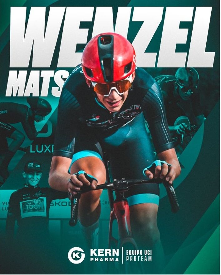 Juanjo Oroz, manager general del Equipo Kern Pharma, valora la incoporación: “Mats Wenzel tiene características que nos gustan, además de ser muy bueno, es valiente, muestra ambición y ya el año pasado tuvo mucha presencia en las fugas, algo a destacar en un chaval tan joven. Esta temporada ha terminado de despuntar finalizando entre los diez mejores en el Giro de Italia Next Gen (8º) y en el Tour de l’Avenir (9º) y recientemente fue 4º en el Campeonato de Europa sub-23”.