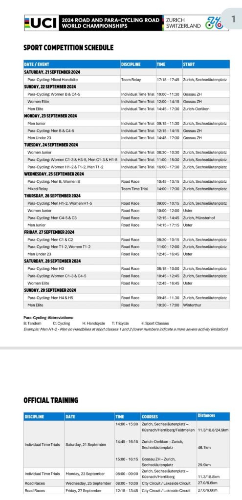 La prueba cronometrada élite masculina, que se disputará el domingo 22 desde las 14:45, tendrá 46,1 kilómetros con salida y llegada en Zúrich y un perfil ideal para los corredores más potentes.