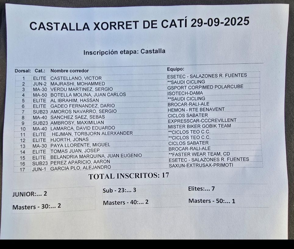 Hoy, 29 de septiembre, se disputa la I Subida Xorret de Catí organizada por el Club Ciclista Castalla.