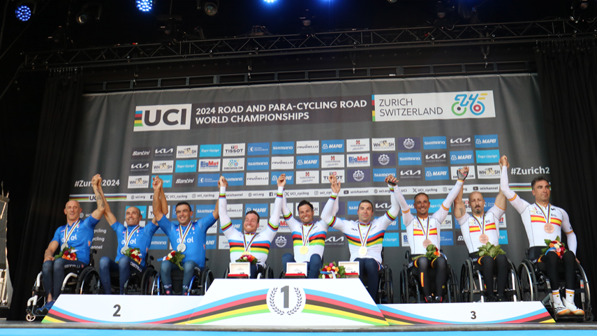 Este sábado, el Mundial de Zúrich 2024 ha arrancado con la celebración del Team Relay de Ciclismo Paralímpico, donde el combinado nacional ha vuelto a subir al podio tras lograr una merecida medalla de bronce gracias al buen desempeño del trío formado por Sergio Garrote, Luis Miguel García-Marquina y David Mouriz.