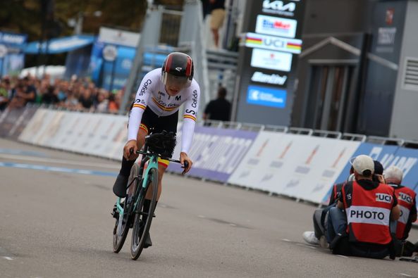 Raúl García Pierna finaliza su CRI en 56’38» para ser 26º. Buena crono del madrileño en su primer año como élite en el Mundial. David de la Cruz ha concluido finalmente 25º.
