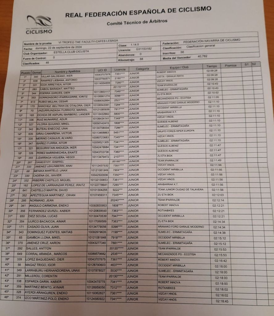 Toni Ramírez (Lucta-Granja Rinya) ha sido segundo en Estella en el VI Trofeo The Faculty-Cafés Lesaga para corredores júniors que ha ganado el local Iker Villar. Buena carrera del ciclista valenciano que lo ha intentado una y otra vez para dejar a su rival. Se han jugado el triunfo en la calles de la localidad navarra. Tercera plaza para Aitor Igoa (Vizcay Hnos.).
