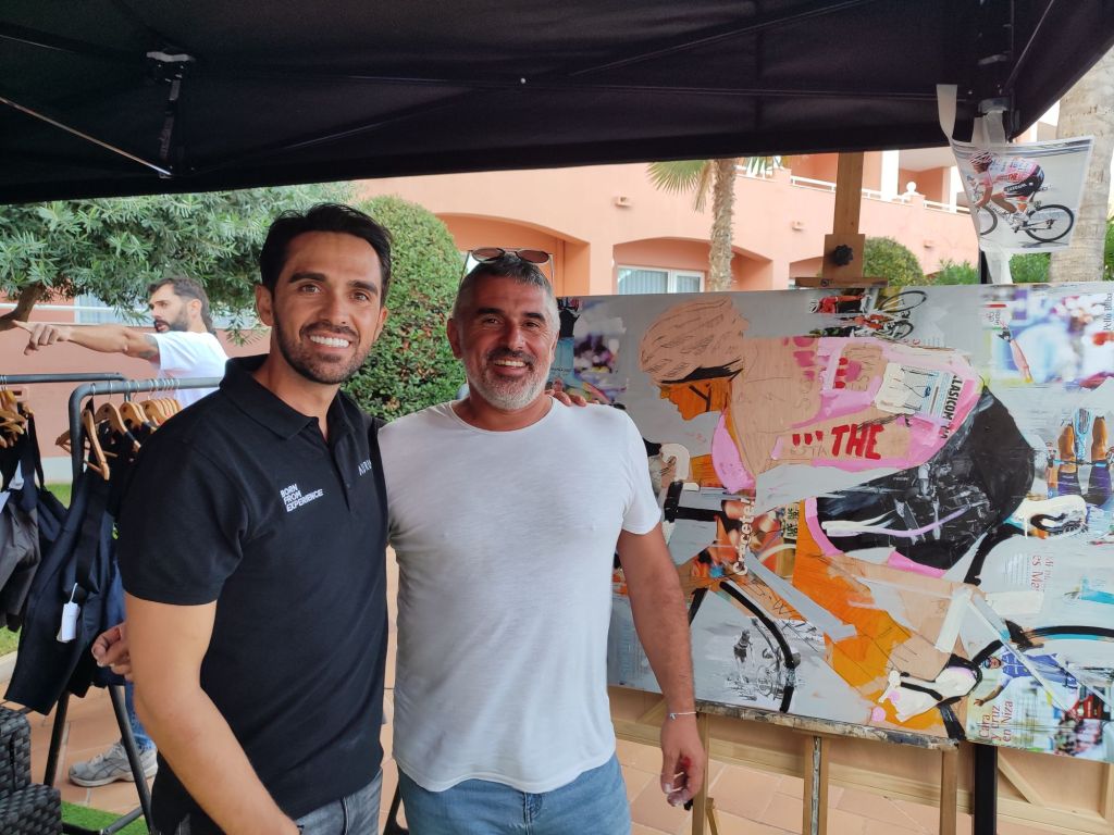 Nuevamente el pintor setabense Miguel Soro tuvo el privilegio de pintar un cuadro durante el pasado viernes junto al bicampeón del Tour de Francia, Alberto Contador, con motivo del Gran Fondo que lleva el propio nombre del ciclista madrileño, en el complejo Oliva Nova Golf.