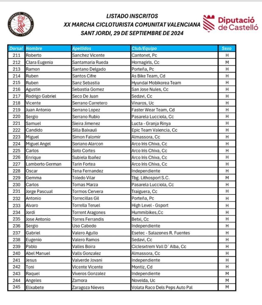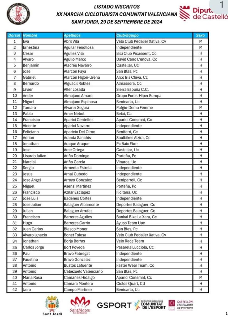 – La marcha es exclusiva para ciclistas federados en la FCCV.