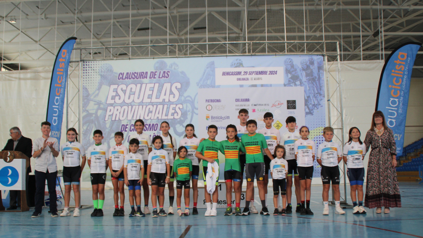 Benicàssim fue el domingo una fiesta deportiva para poner el punto y final a la temporada de Escuelas de la temporada 2024 y homenajear a los vencedores de la Challenge de la provincia. Destacar la presencia del ciclista profesional y pistard Sebastián Mora. No hubo competiciòn en sí y tras una espectacular exhibición de todas las Escuelas, se cerró la jornada con una gala llena de emociones en la que su punto más álgido se vivió cuando se procedió a la despedida de los ciclistas de la categoría Infantil de segundo año, quienes dicen adiós a su formación dentro de ciclismo escolar y ya tienen puesta su mirada en una nueva etapa en su vida dentro de la categoría cadete.