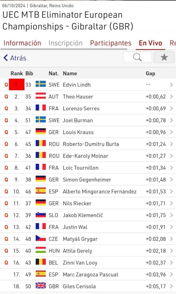 Theo Hauser y Gaia Tormena se adjudicaron los títulos europeos de XCE disputados en Gibraltar. En féminas, Amparo Chapa terminó décima. Esa fue su posición en la crono. Luego, en 1/4 fue eliminada ante Adéla Pernicka y Madison Boissiere.