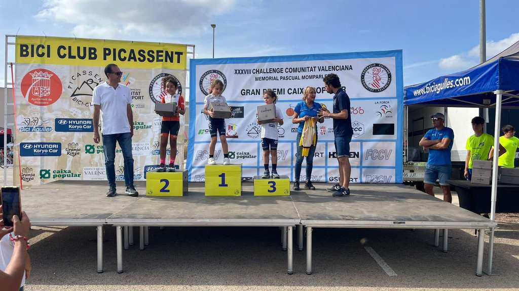En Escuelas de Ciclismo, victorias de Gala Gómez (Granja Rinya-BC Picassent) y David Chenoll (Big Bikes Carlet), en Promesas; Ylenia Callau (Vall D’Uxo UC) y Martín Fernández (Vall D’Uxo UC), en Principiantes; Abril Padilla (La Forca) y Leo Ruiz (La Valldigna CC), en Alevines; y Martina Menor (Guti Vinalesa) y Mateo Mille (Bernia-Xaló CC), en Infantiles.