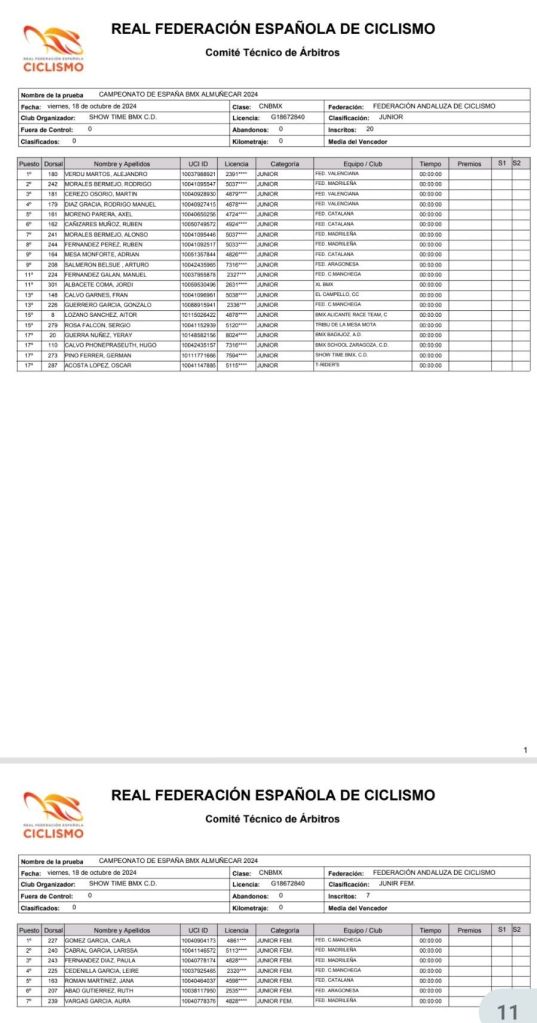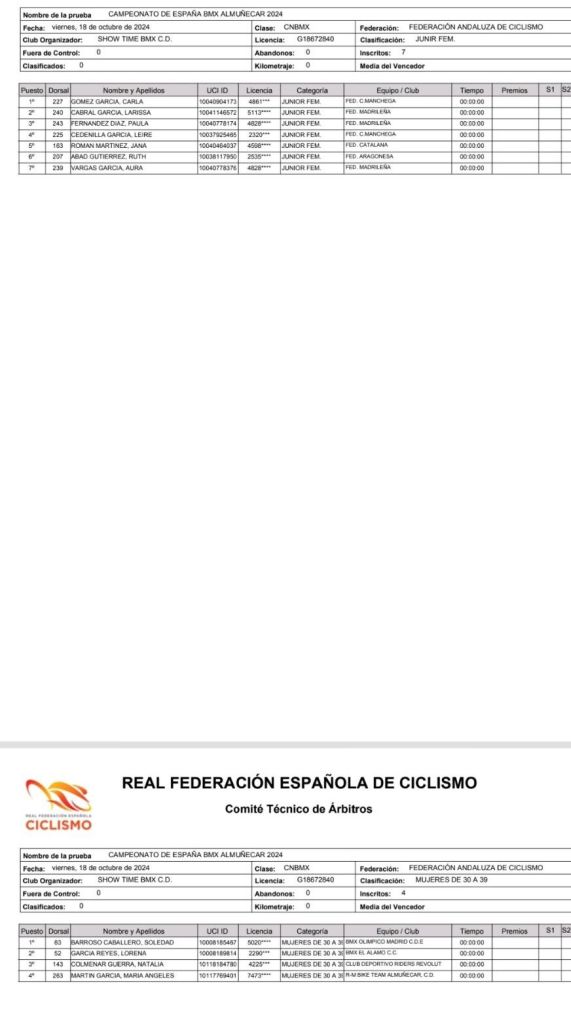 Carlos Ordóñez (FCCV), en Élite y Sub 23, se ha colgado la plata y Jaime Pastor (FCCV), en Cadetes; Enrique Santonja (BMX Alcoy), en Hombres 40 a 49; y Martín Cerezo, en Júnior, el bronce.