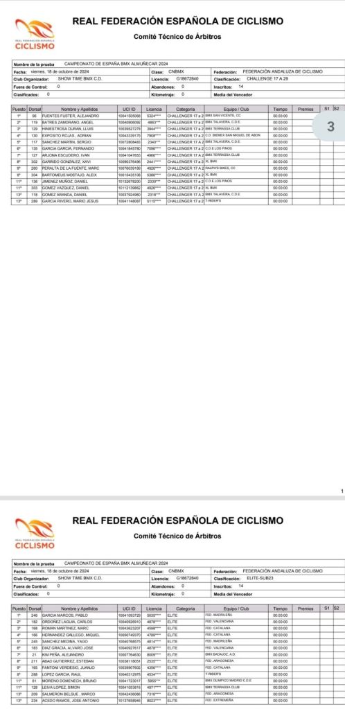 Alejandro Fuentes ( BMX San Vicente), en Challenge 17 a 29 años; Alejandro Verdú ( Bikepark Costa blanca), en júniors; y Vicente García (FCCV), en Infantiles, se han proclamado hoy campeones de España de BMX en la primera jornada del Nacional que se ha disputado en Almuñécar.
