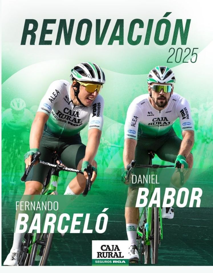 Después de anunciar el fichaje de nueve ciclistas, el conjunto Caja Rural-Seguros RGA continúa dando forma a su plantilla para la próxima temporada con la confirmación de las renovaciones de Daniel Babor y de Fernando Barceló. Tanto el velocista checo como el todoterreno aragonés han prolongado su vinculación por un año más.