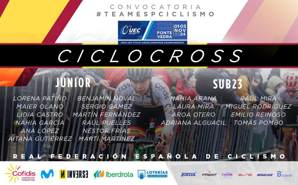 Aroa Otero, Nahia Arana, Adriana Alguacil, Laura María Mira, Raúl Mira, Miguel Rodríguez, Emilio Reinoso y Tomás Pombo formarán el bloque sub23; mientras que como juniors acudirán Lorena Patiño, Lidia Castro, Nahia García, Maier Olano, Ana López, Aitana Gutiérrez, Benjamín Noval, Sergio Gámez, Martín Fernández, Raúl Puelles, Néstor Frías y Martí Martínez.