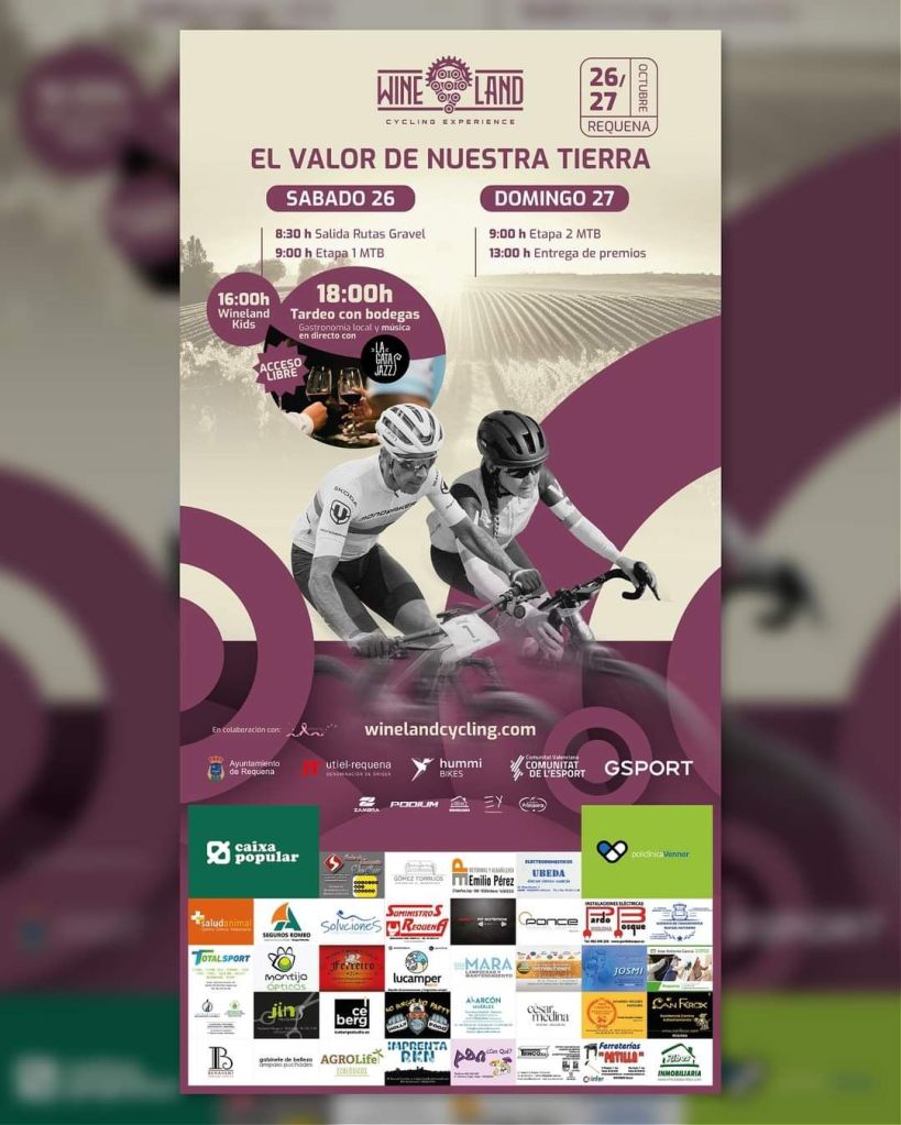 Este fin de semana se disputa en el entorno de Requena la Wineland Cycling Experiencie. La carrera discurre por recorridos espectaculares, con increíbles descensos y tramos llanos entre viñedos, integrando deporte, cultura y enología en una experiencia única en la Comunidad Valenciana.
