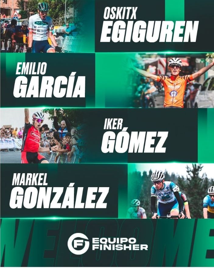 “Son cuatro ciclistas con diferentes perfiles que trabajaremos para que se adapten bien a la categoría. Iker y Emilio vienen de ser referentes en categoría junior y Oskitx y Markel han mostrado su buen nivel en el calendario vasco y su capacidad de trabajo por el colectivo”, destaca Ander Altuna, director deportivo del Equipo Finisher.