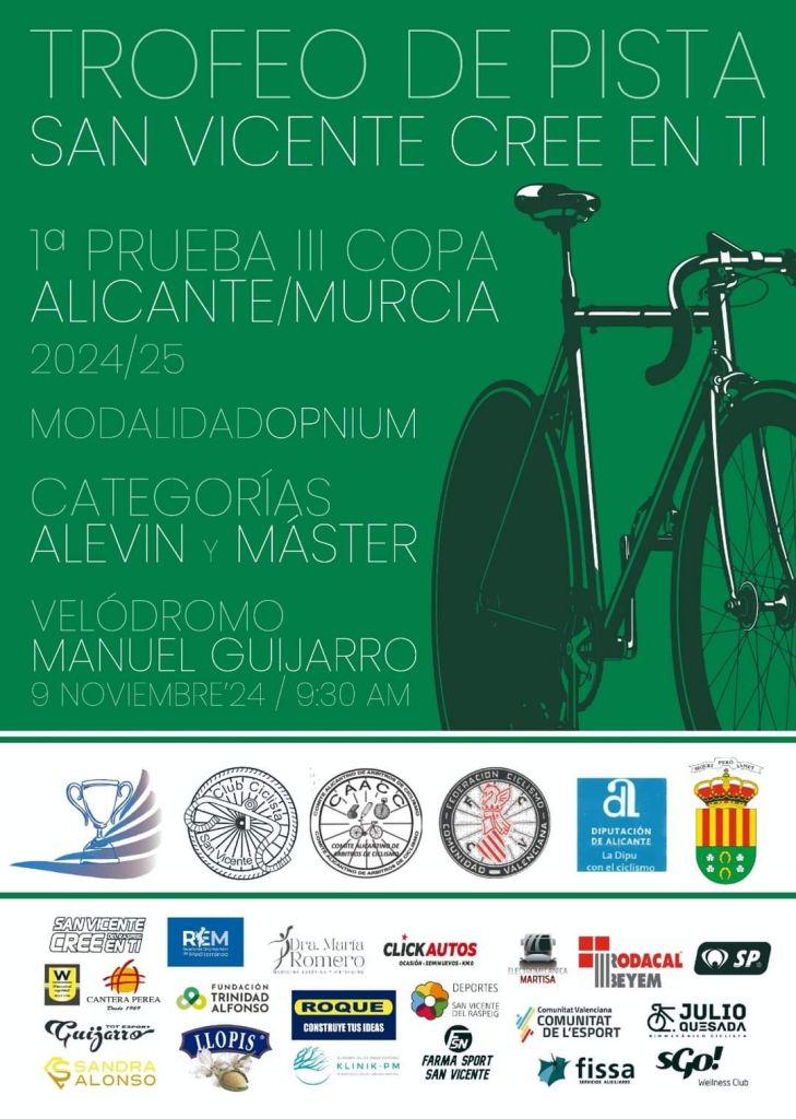 Inscripciones abiertas hasta el jueves 7/11 para la primera prueba de la III Copa Alicante-Murcia de Pista que se disputa el sábado en el Velódromo Manuel Guijarro de San Vicente del Raspeig. INSCRIPCIONES