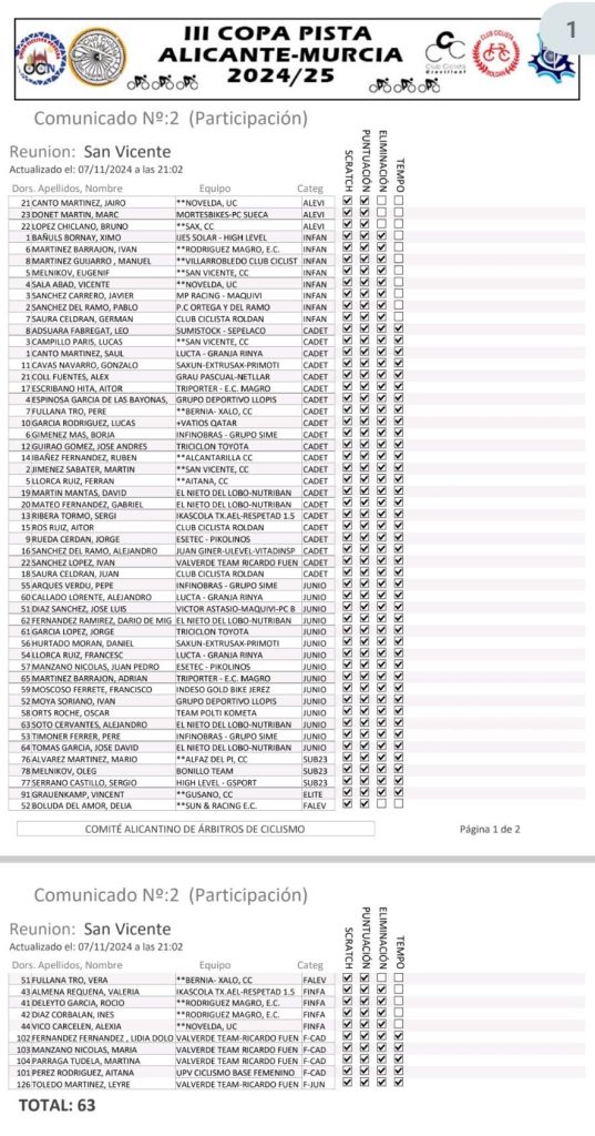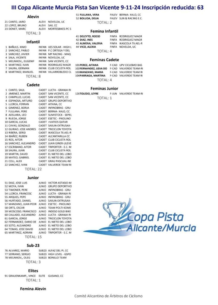 La temporada de Pista comienza hoy sábado, 9 noviembre, en San Vicente del Raspeig, con motivo de la primera prueba de la 𝗜𝗜𝗜 𝗖𝗼𝗽𝗮 𝗔𝗹𝗶𝗰𝗮𝗻𝘁𝗲/𝗠𝘂𝗿𝗰𝗶𝗮 𝗱𝗲 𝗣𝗶𝘀𝘁𝗮 𝟮𝟬𝟮𝟰/𝟮𝟱. Se han inscrito 63 corredores.