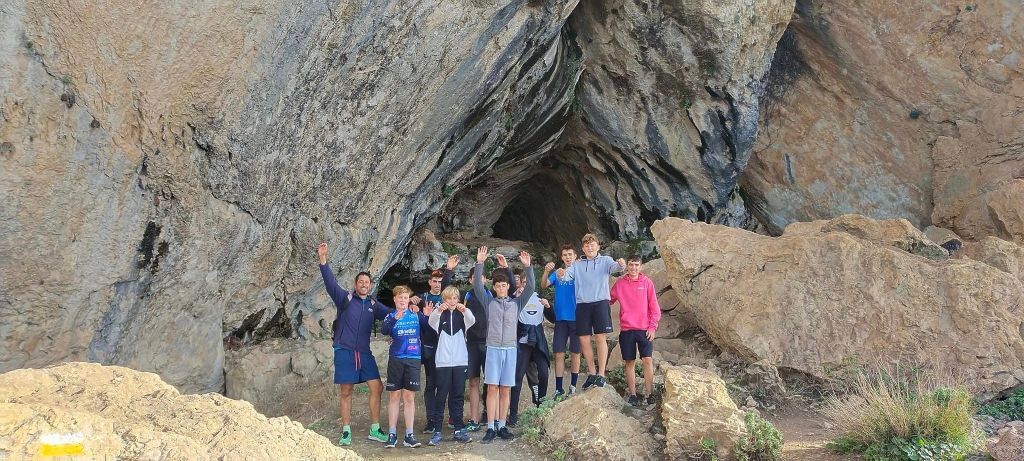 El equipo cadete Grau Pascual-Saxun realiza su primera jornada de convivencia con la mirada puesta en la temporada 2025. Día de convivencia en la montaña circular de Bernia para dar los primeros pasos con la mochila en la espalda y sumar la elevación acumulada con su paso por el agujero y visita al Fuerte que preside la majestuosa montaña alicantina.