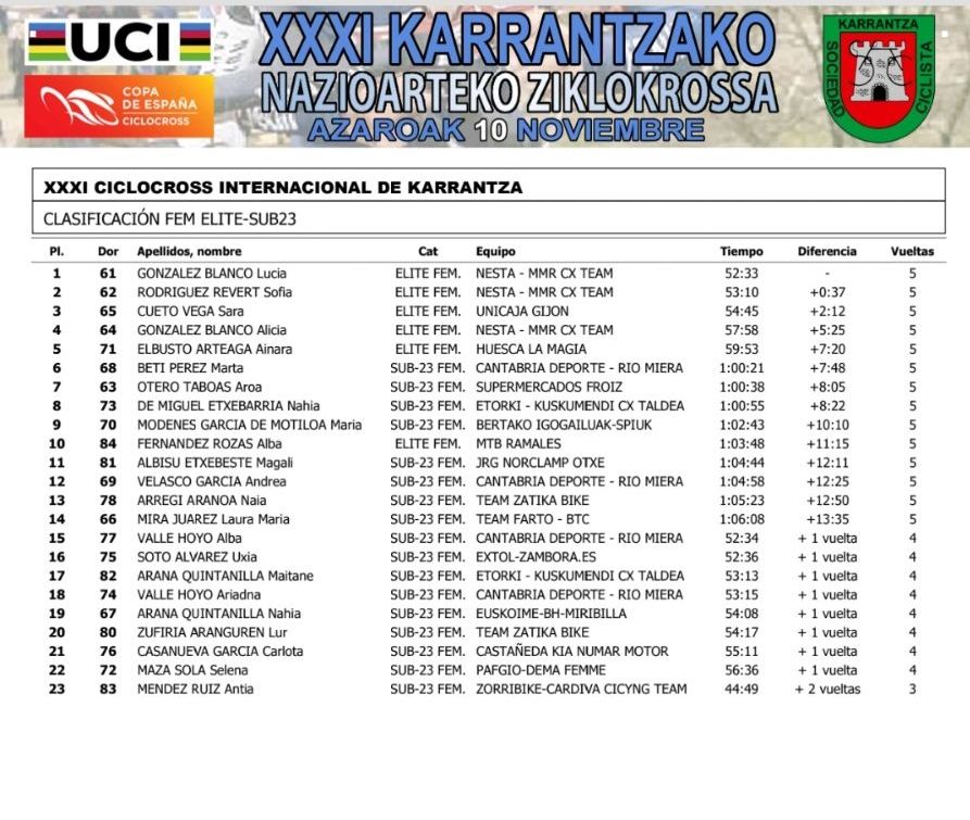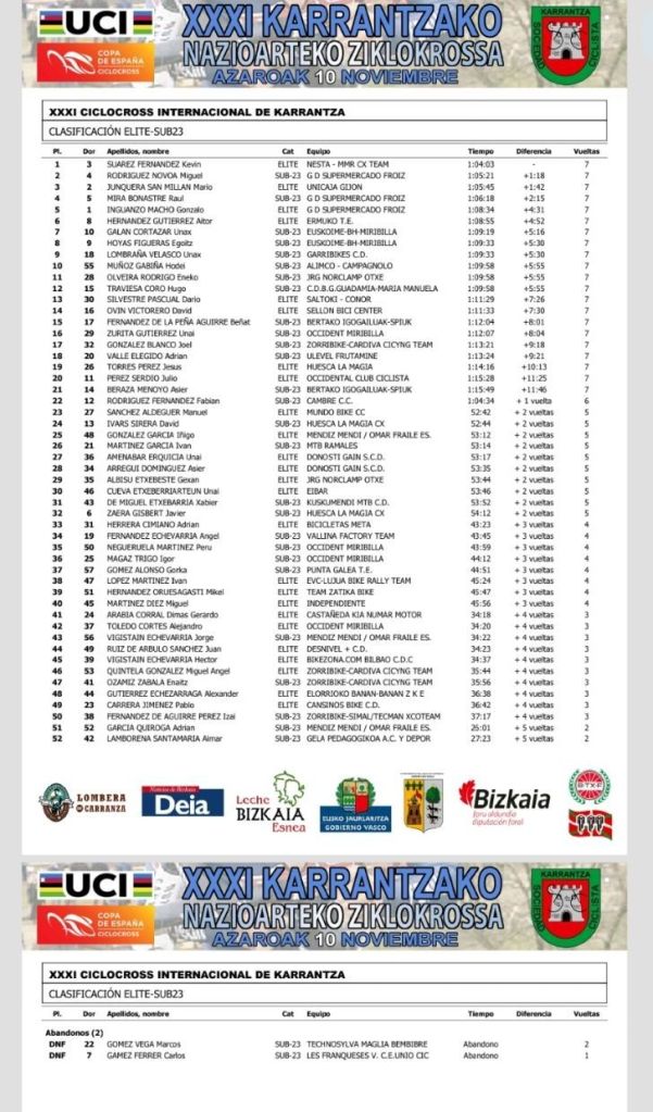 10 de noviembre / XXXI Ciclocross Internacional de Karrantza / Karrantza, Bizkaia, País Vasco. Clasificaciones