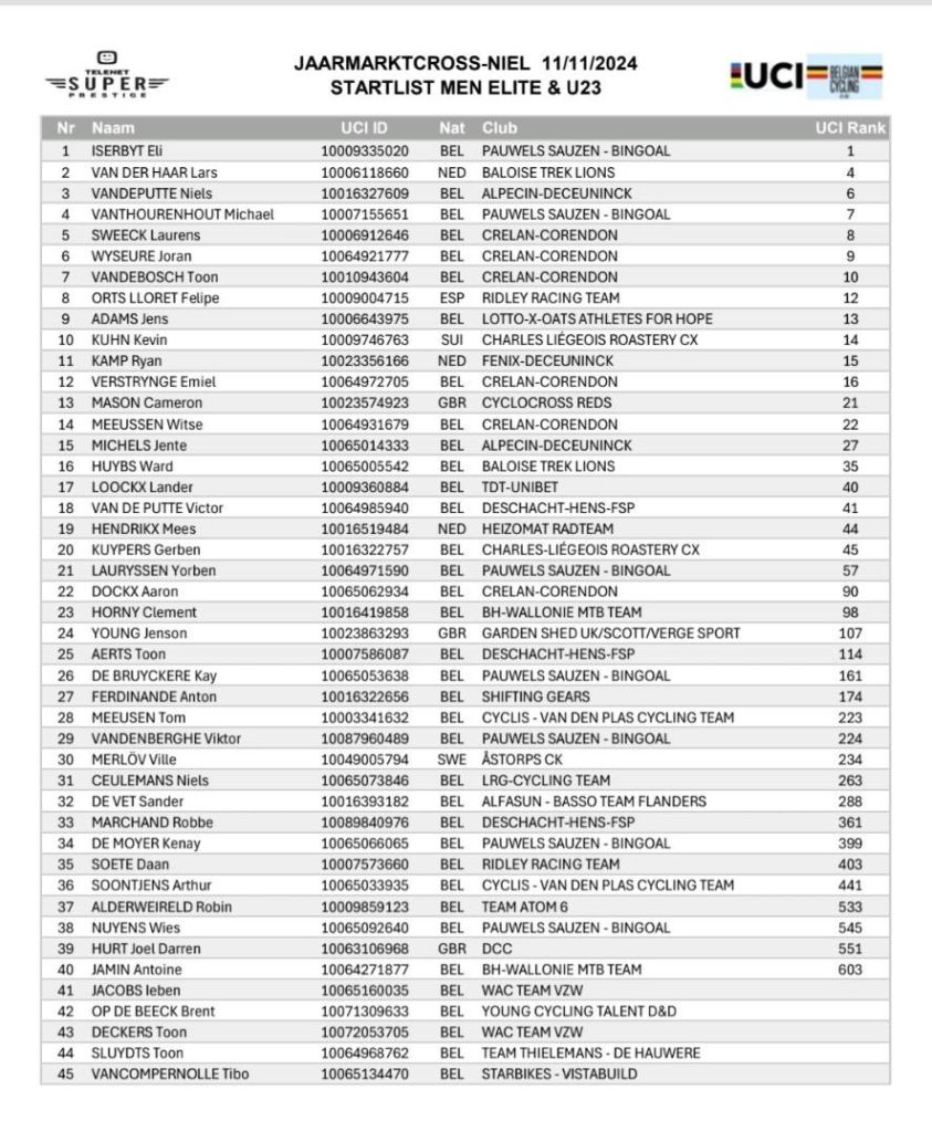Hoy, día 11 de noviembre, se disputa el Superprestige Niel – Jaarmarktcross, tercera prueba puntuable para el Trofeo Superprestige. Tras su éxito del sábado en Rucphen el vilero llega con mucha fuerza y ganas de seguir haciendo historia.