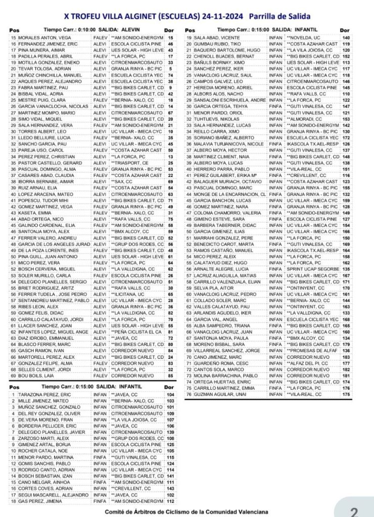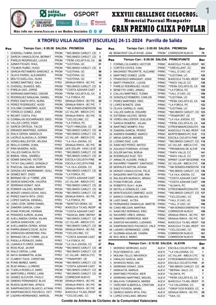 Calendario de la Challenge de Ciclocross CV – Memorial Pascual Momparler – Gran Premi Caixa Popular. General . Escuelas: General