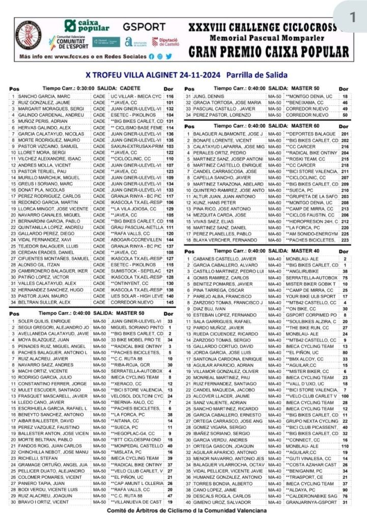 La población valenciana de Alginet abrirá el fuego ciclista este próximo domingo, día 24 de novienbre, tras la desastrosa Dana que asoló la provincia de Valéncia. El Trofeo Villa d’Alginet de ciclocross, prueba puntuable para la Challenge de la Comunitat Valenciana contará con una importante participación además de los fijos en Copa España a excepción de Raúl Mira. Javier Avellaneda de la Penya Ciclista Castell de Alginet ha realizado algunas modificaciones al circuito poniendo algunos pequeños montículos en mitad del trazado.