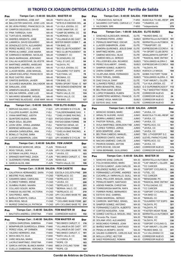 – 13:15 H.: Élite-Sub23, M30 y Junior (Hombres).