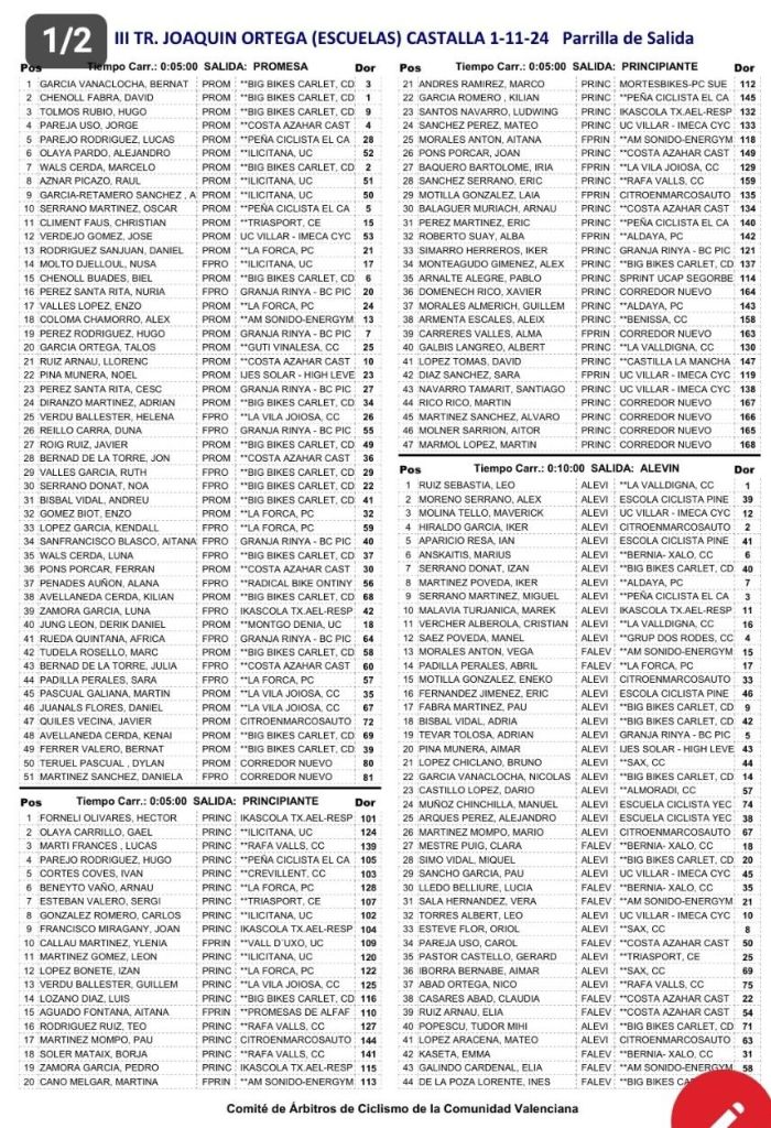 Calendario de la Challenge de Ciclocross CV – Memorial Pascual Momparler – Gran Premi Caixa Popular. General . Escuelas: General